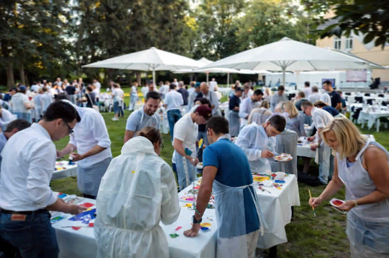 Ausgestattet mit Farben, Pinseln, Schürzen und Handschuhen tauchen alle Teilnehmenden in eine ungewohnte, inspirierende Welt ein. Hier begegnen sich Kolleginnen und Kollegen auf Augenhöhe – jenseits von Hierarchien, Rollen oder Abteilungen. Es entstehen Gespräche, die es im Arbeitsalltag so nicht gibt. Es wird gelacht, experimentiert, entdeckt. Kreatives Arbeiten verbindet – leicht, spielerisch und mit spürbarer Wirkung.